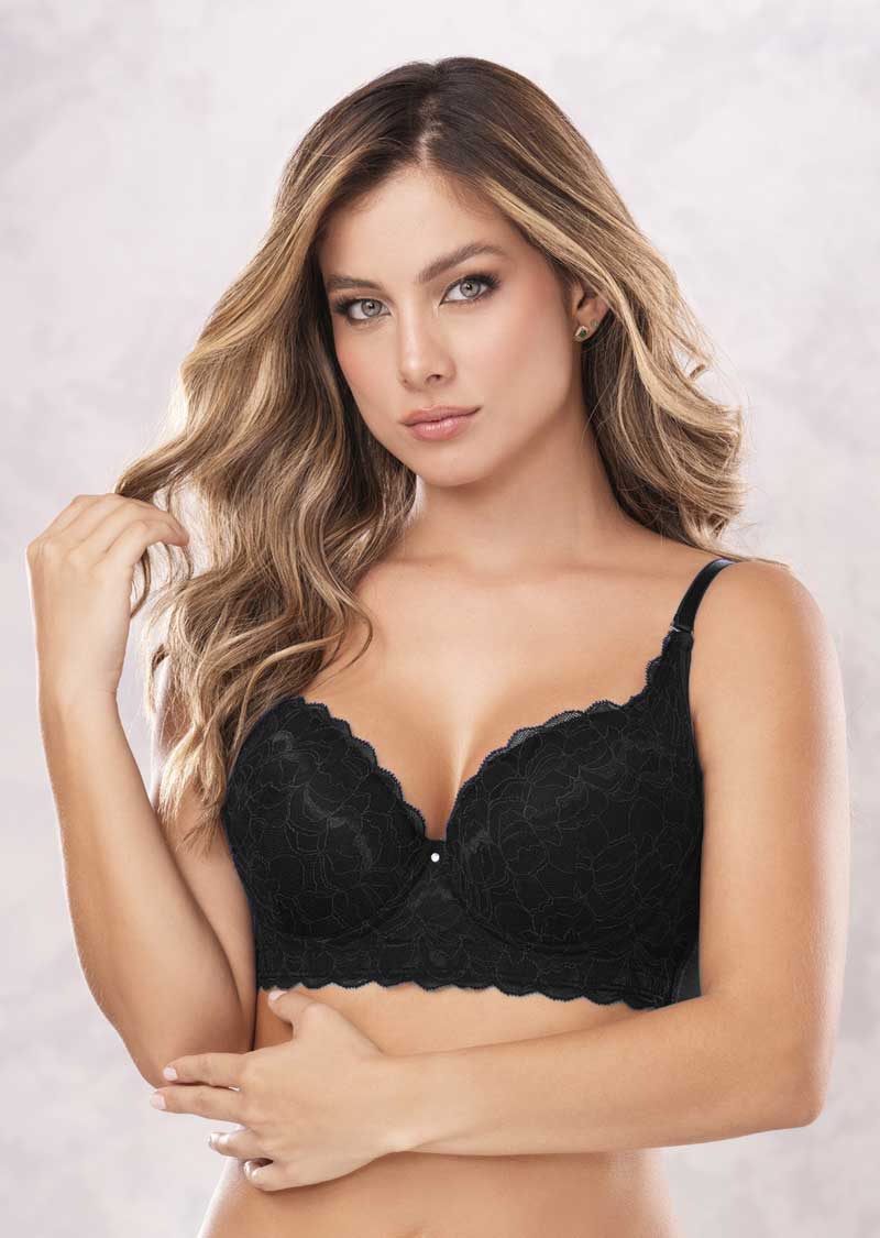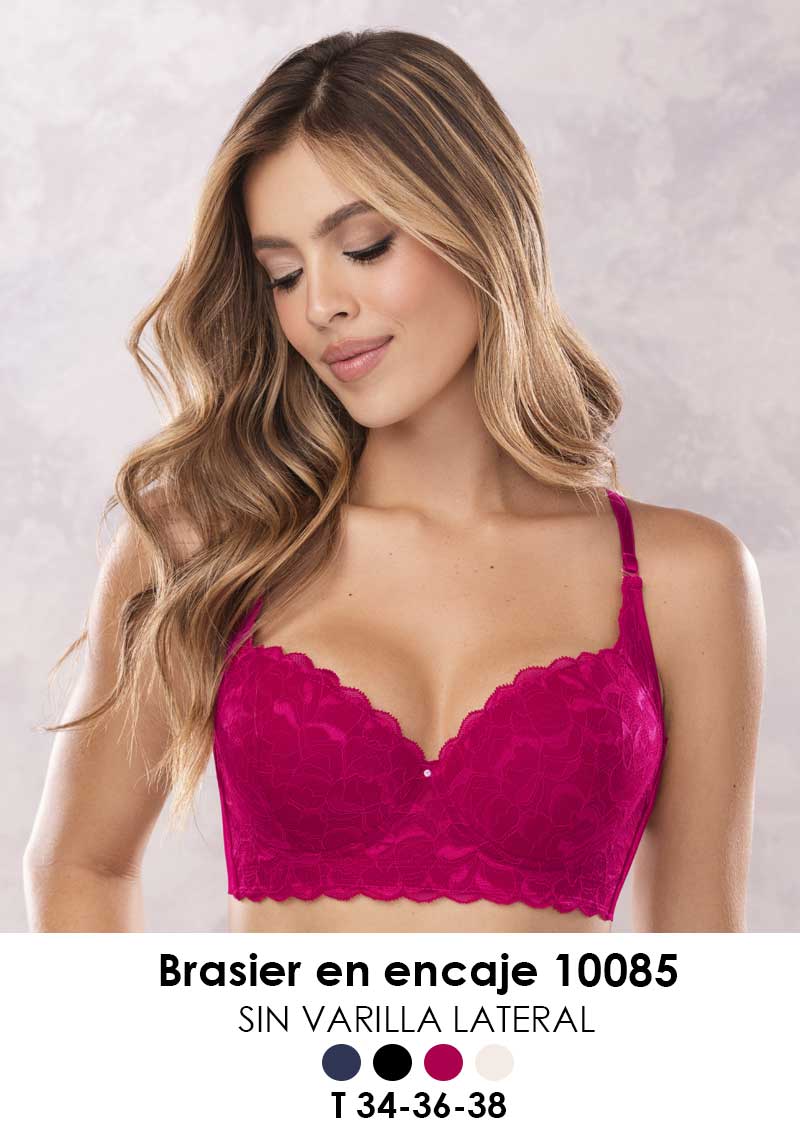 - Copa media de mayor cubrimiento. - Aro en copa. - Sin varilla lateral. - Refuerzo de modelación bajo el brazo. - Espalda a corte libre en microfibra de tacto suave. - Abrochadura 3x3.