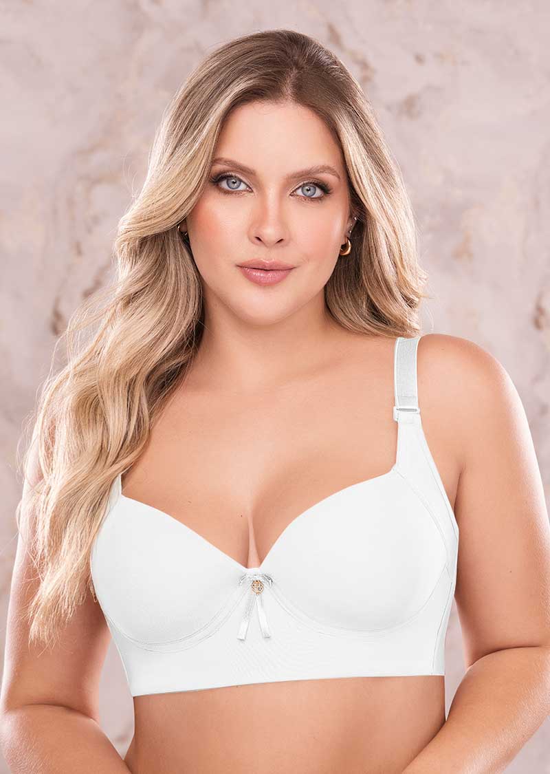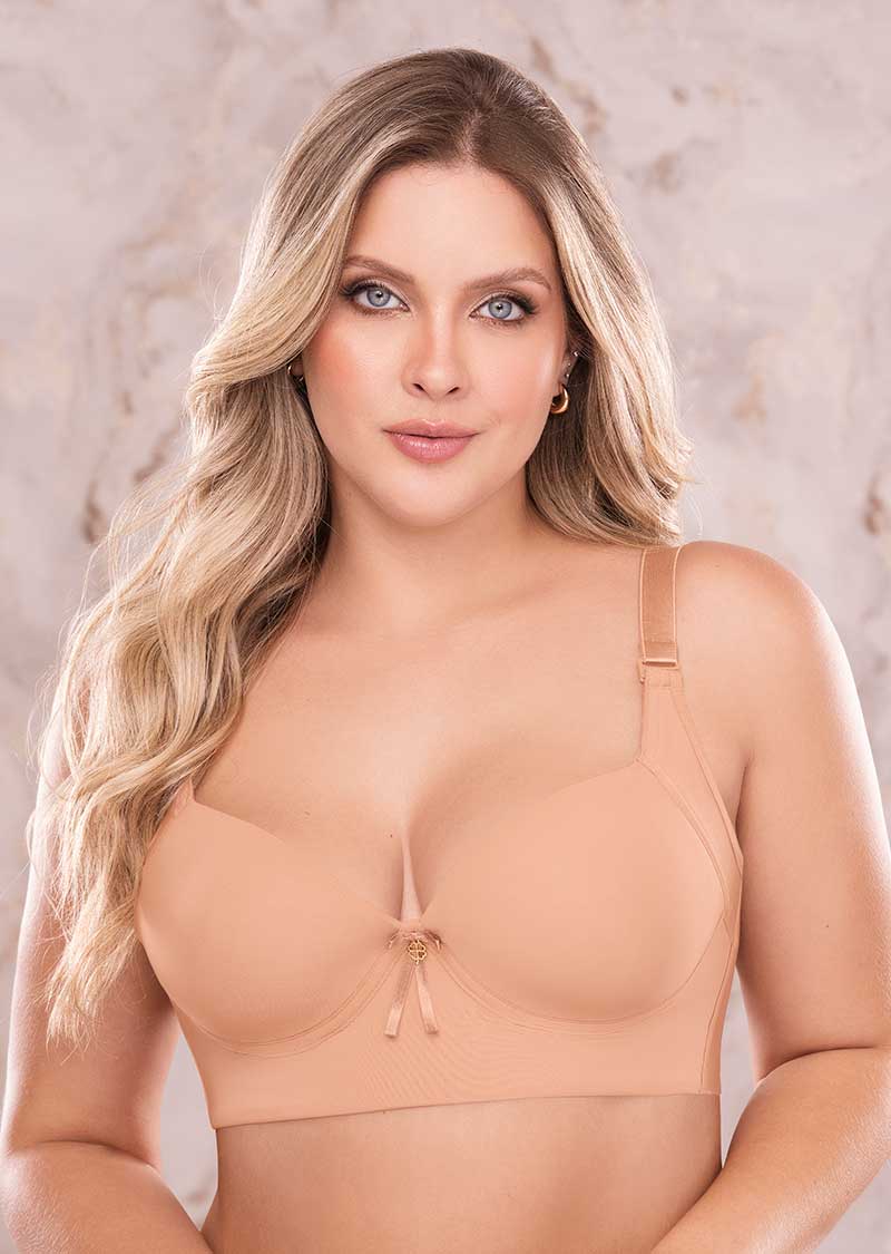 Soporte y Cubrimiento en lycra y microfibra. - Copa media de mayor cubrimiento. - Refuerzo de modelación bajo el brazo. - Aro y varilla lateral. - Espalda tipo chaleco en microfibra a corte libre. - Abrochadura 6x3.